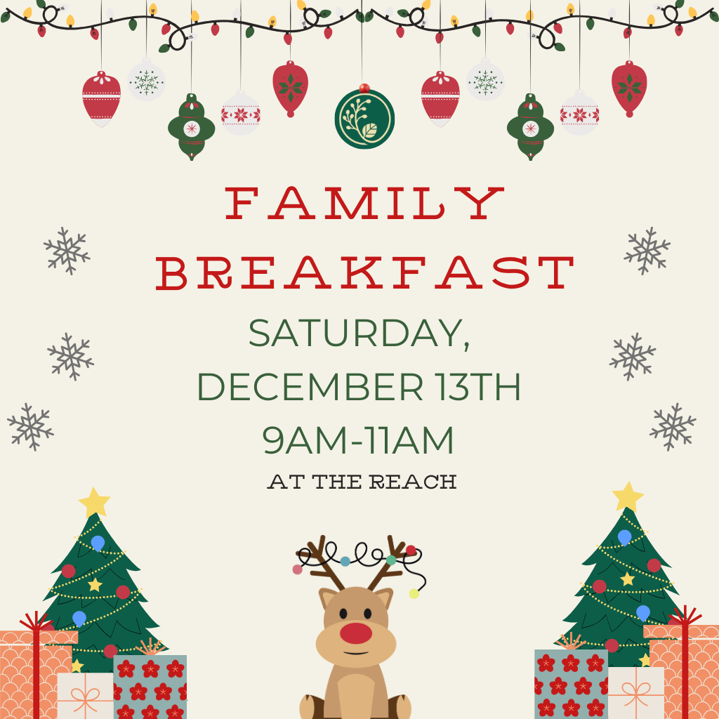 Come join us for our Family Breakfast here at The Reach. We will have some traditional breakfast favorites! Bring the family, invite a friend or two, or come alone – everyone is welcome. Can’t wait to see you there!